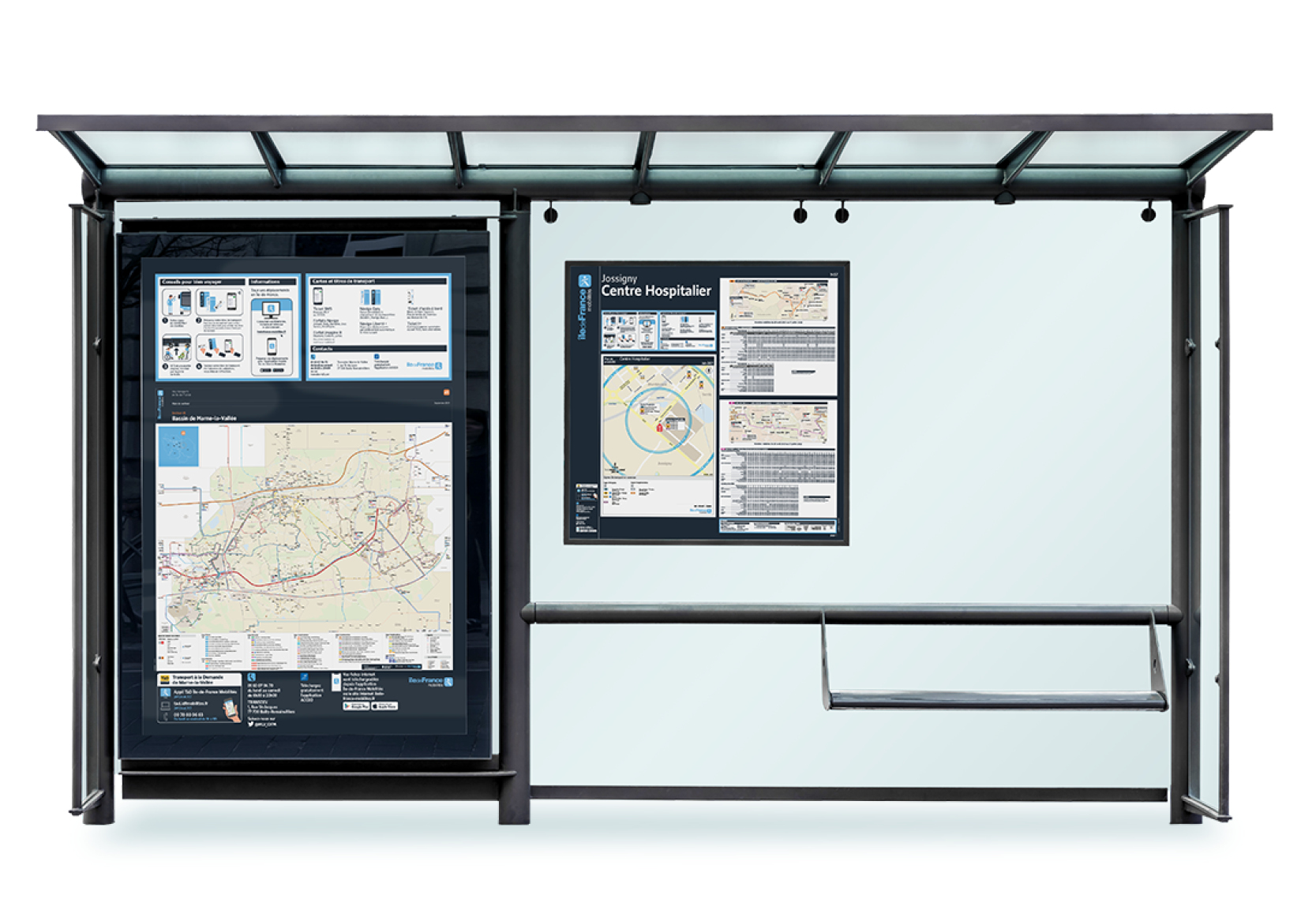 Un travail minutieux sur des volumes de production à l’échelle régionale, du petit dépliant aux nombreux abribus.
