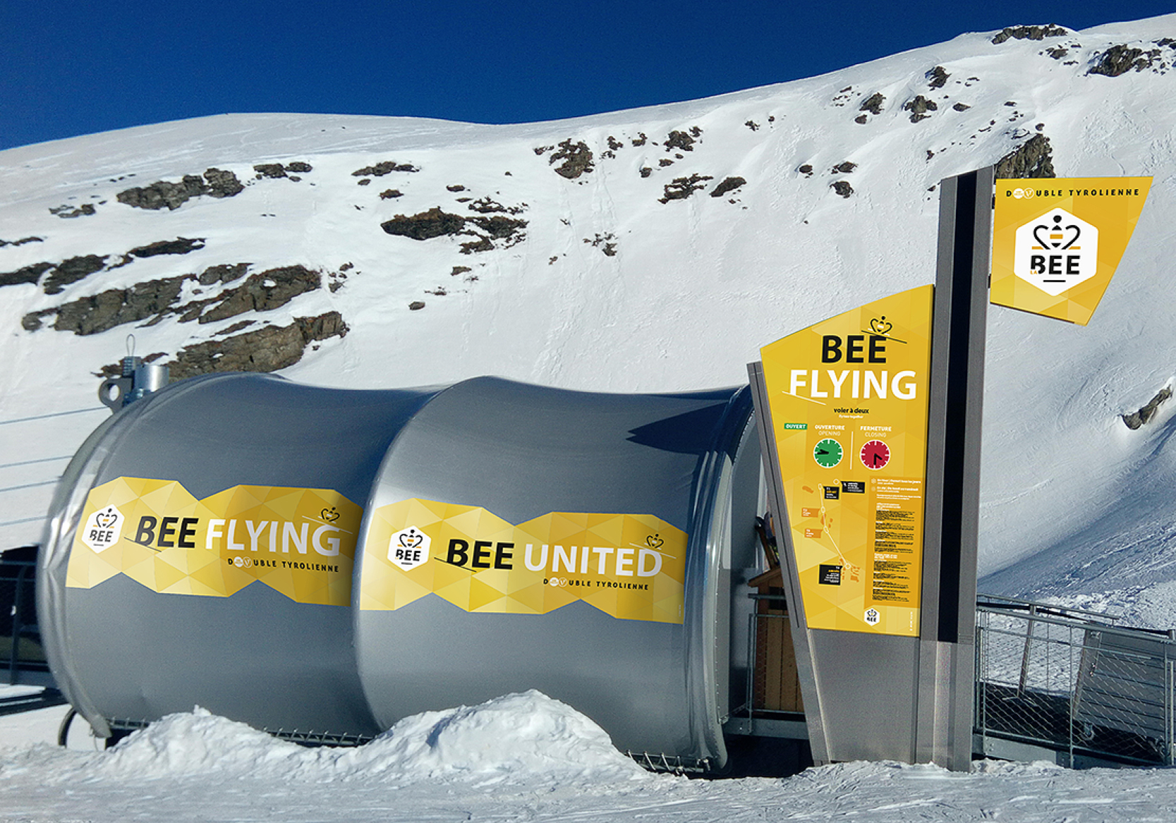 L’histoire de « La Bee » démarre lors du naming. un Bee-nôme sur la double tyrolienne couplé à l’abeille toute désignée pour l’occasion : elle vole, elle butine et tout le monde l’adore !