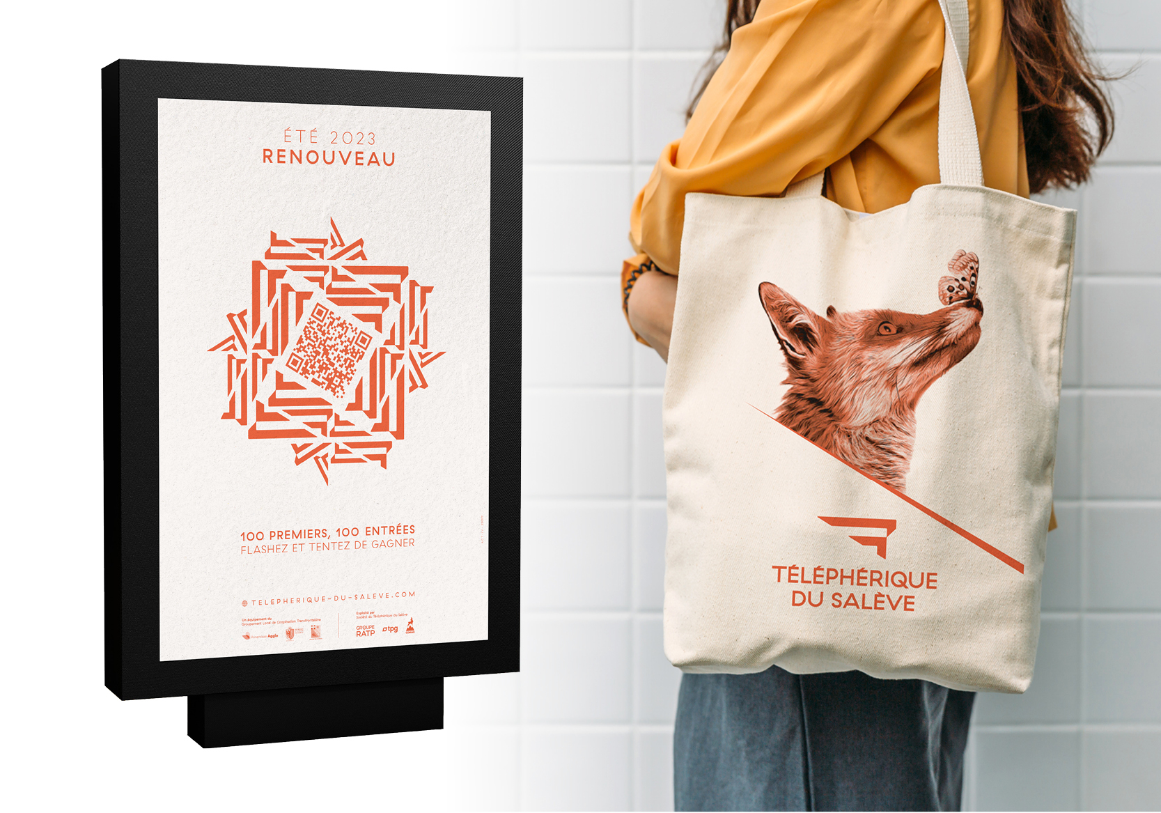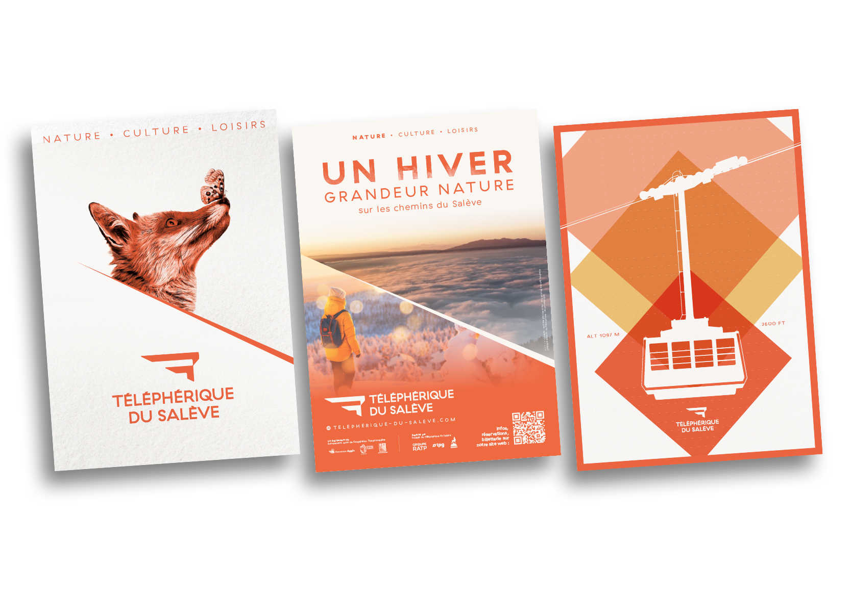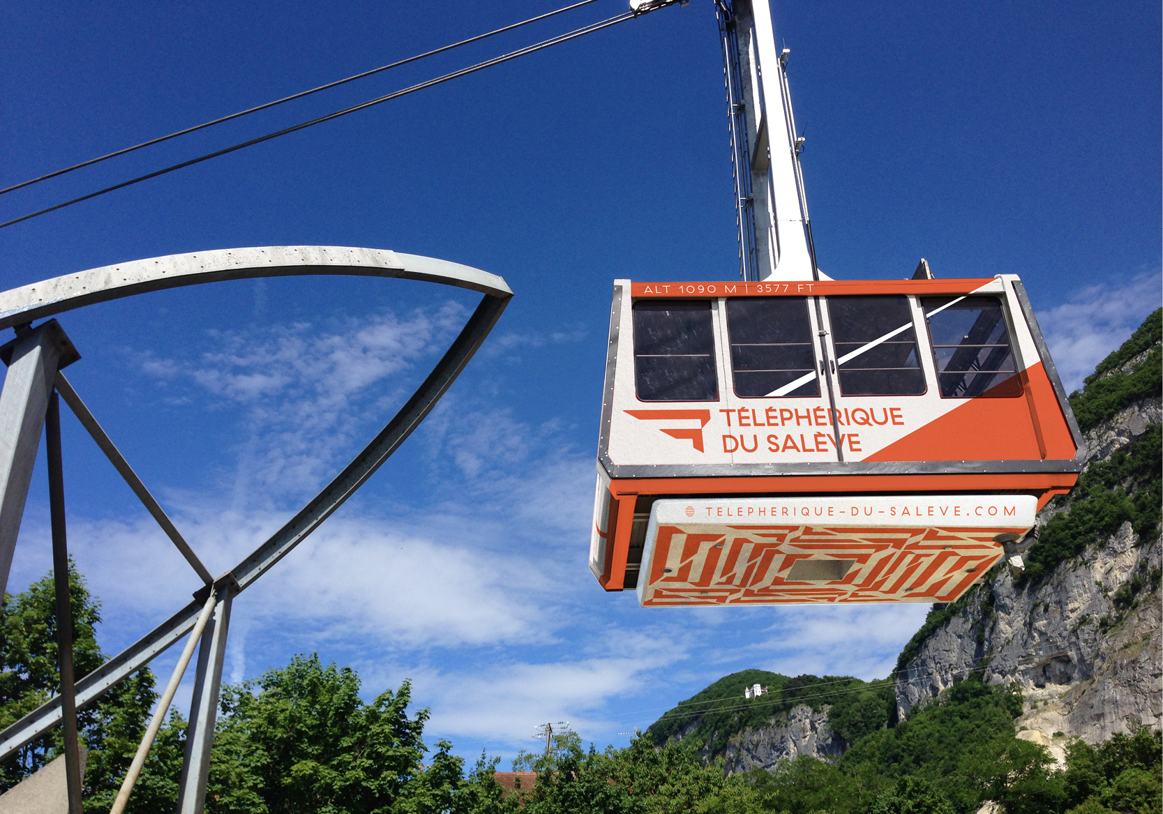 À l’occasion de la rénovation du Téléphérique du Salève, bâtiment classé au titre des monuments historiques, nous avons travaillé sur sa refonte identitaire. Notre objectif était de préparer une stratégie marketing depuis son inauguration jusqu’à aujourd’hui. Covering de la cabine, campagnes promotionnelles, goodies tendance, information voyageurs – c’est en co-création avec leur équipe que nous avons renouvelé ce patrimoine historique.